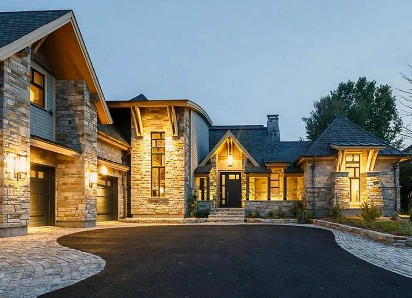 Если вы живете в более прохладном климате, дизайн проекта фасада дома стоит оформить в темных цветах, что поможет сохранить тепло в доме.