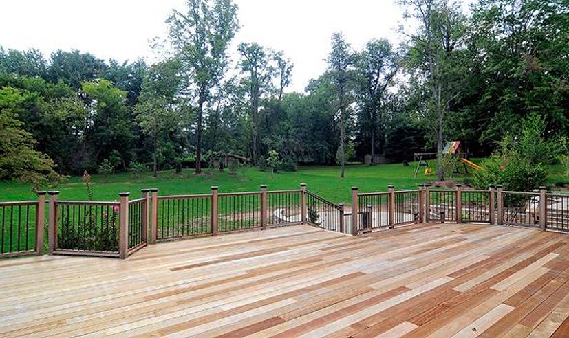 Терраса имеет изящное кованое ограждение, которое прекрасно сочетается с экстерьером дома.