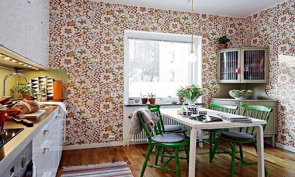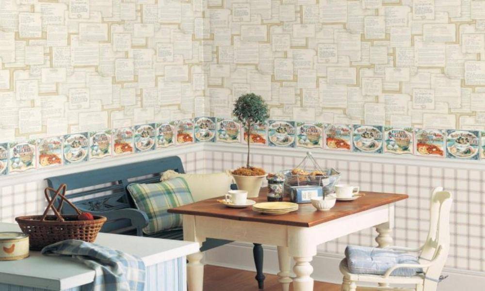 Виниловые полотна — самые популярные. Они выпускаются с гладкой и рельефной поверхностью. Винил не выгорает на свету, достаточно прочен, чтобы служить до 20 лет без потери качества. Частая влажная чистка не может повредить этим покрытиям, однако рельефные на кухне не следует использовать, так как чистить загрязнения из углублений узора сложнее.