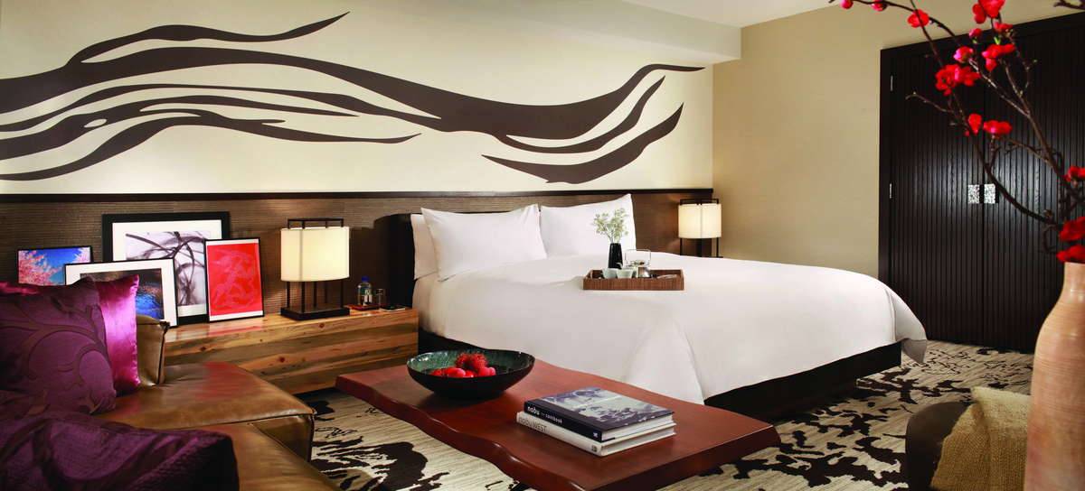 Все номера спроектированы с вниманием к деталям — в них есть итальянские простыни, а фэншуй в номерах тщательно продуман дизайнерами. В дополнение к этому, в номерах есть собственные японские произведения искусства, и общие цвета комнат золотисто-фиолетовые. Может быть это странная комбинация, но отель «Нобу» мастерски справляется с этой задачей