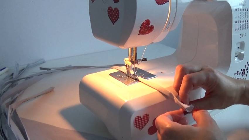 | 8 | ![]() | Каждую тканевую полосу заверните внутрь с 2-ух сторон, сложите пополам и прострочите. |