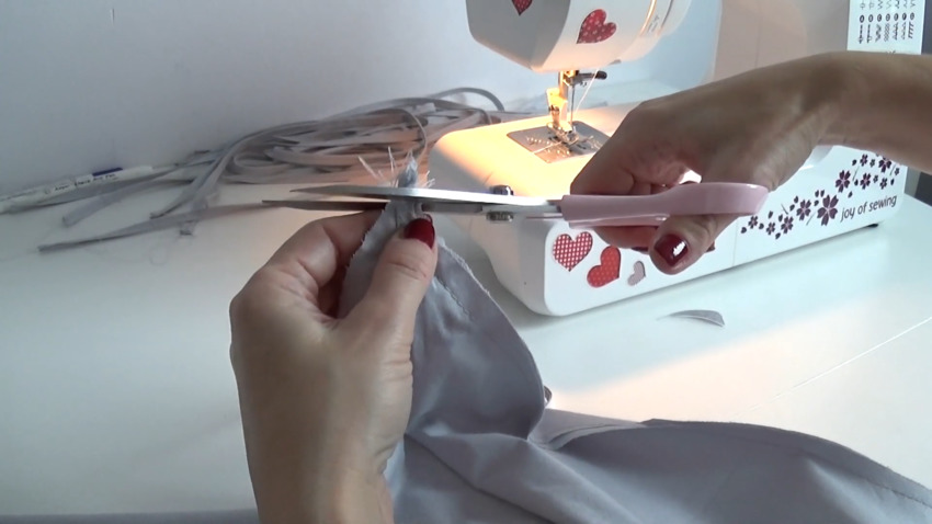 Верхний край материи подворачивается на 15 см и подшивается таким образом, чтобы осталась торчащая “корона”.