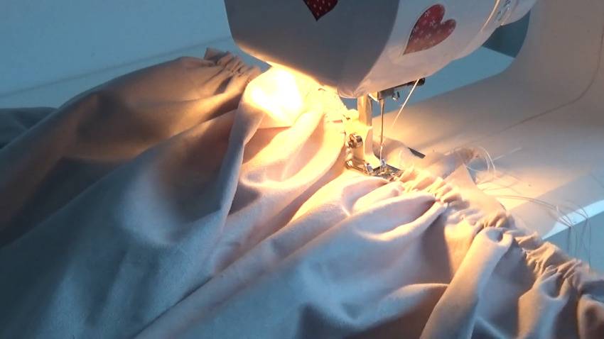 Когда выкройка готова, а детали вырезаны, нужно их сшить. В первую очередь необходимо обработать низ и боковые стороны ткани. Также, если предполагается кружево, стоит пришивать его сразу же, так как после присоединения юбочки аккуратно сделать это очень трудно.