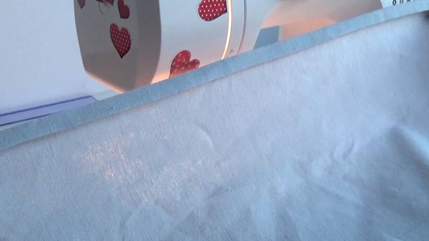 2) Далее распределите шов так, чтобы он был ближе к верхнему краю. Для этого следует прогладить ткать так, чтобы шов, где крепится основная ткань, был ближе к верхнему краю. Этот шов с двух сторон нужно прострочить так, чтобы в пространство между строчками проходил крепеж.