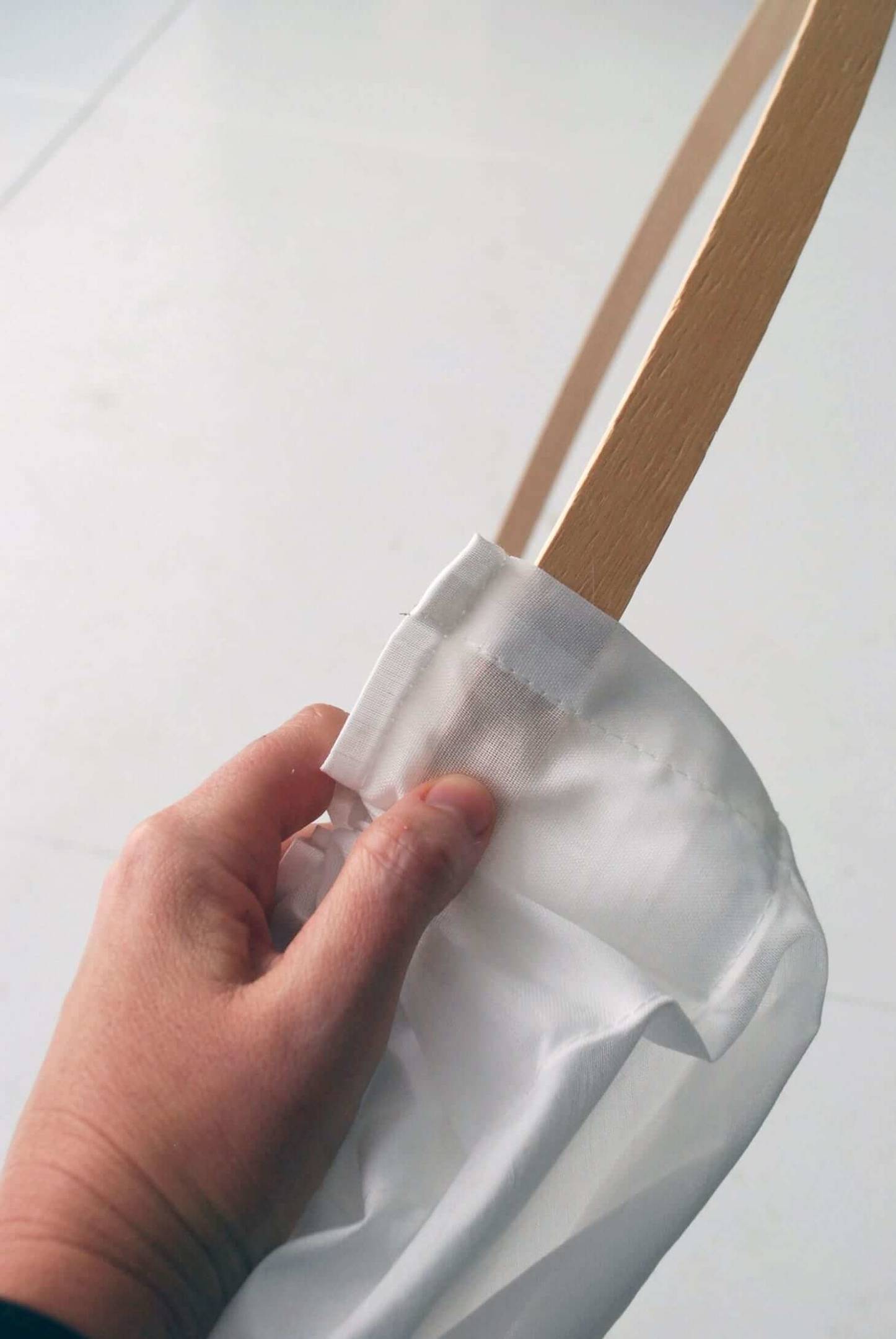 Отрезы ткани закрепляются на перекладинах каркаса.