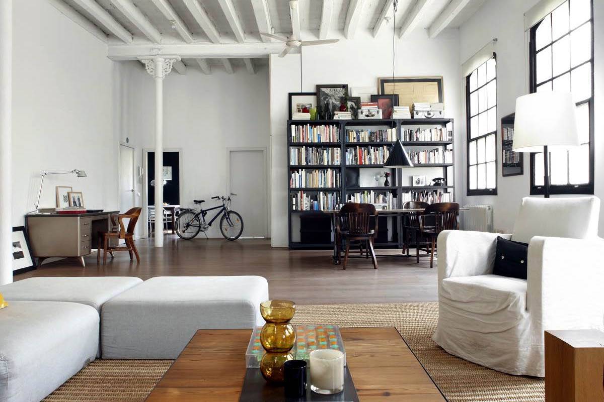 Элементы лофтовской обстановки можно использовать не только в декоре домика в деревне, но и в небольшой городской квартирке. Несколько балок, чуточку облицовочного кирпича, дополненных блеском стекла, металла и украшенных «голыми» лампочками, а также вызывающе торчащими проводами – и лофт-атмосфера готова.