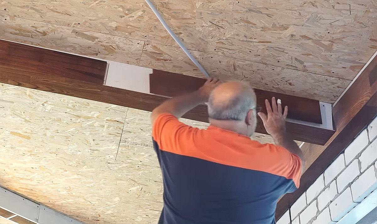 Процесс обработки балок на потолке выглядит следующим образом: