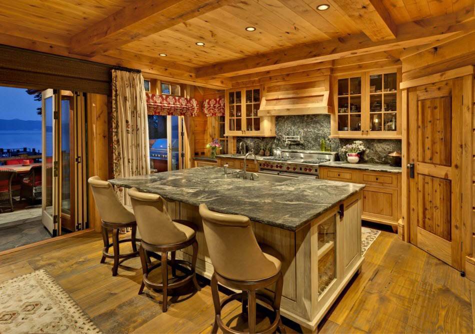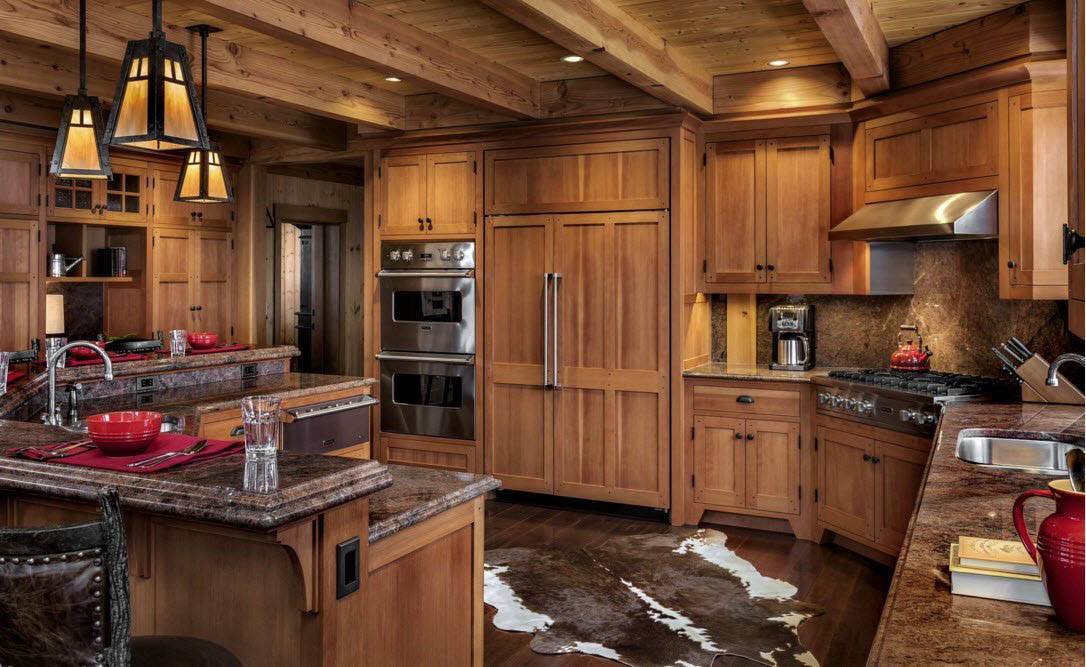 Если кухонный гарнитур изготовлен из дерева, то смело используйте балки: они здорово работают на расширение пространства и создают тот самый уют, который принято обзывать шаблонным словом “домашний”.