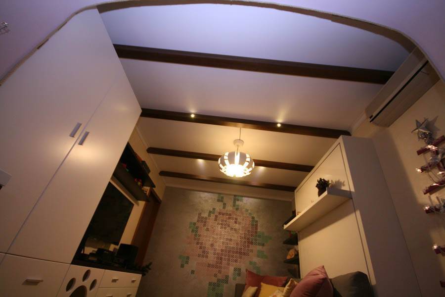 Все-таки массивность потолочного свода – это не то, что хочется видеть, каждый раз уютно накрываясь одеялом.