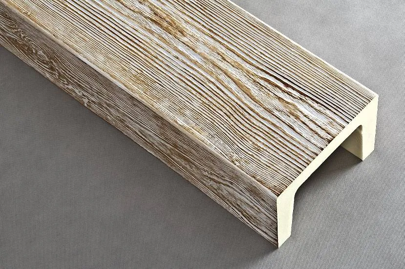 Это один из самых легких материалов. Потолочные балки из полиуретана отличаются стойкостью к перепадам влажности и температуры. А благодаря использованию современного сырья и новых технологий получается полное сходство с деревянными конструкциями. Современные производители точно имитируют фактуру ореха, клена, вишни и дуба. Их легко установить своими руками. Можно выбрать конструкции, выполненные под состаренную древесину с выбоинами и сколами. Они могут имитировать и металлическую поверхность.