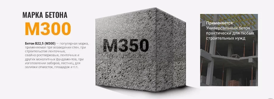 | М300 | Применяется в случаях, когда требуется дополнительная прочность (большой вес здания, сложная конструкция системы, нестабильные почвы). |