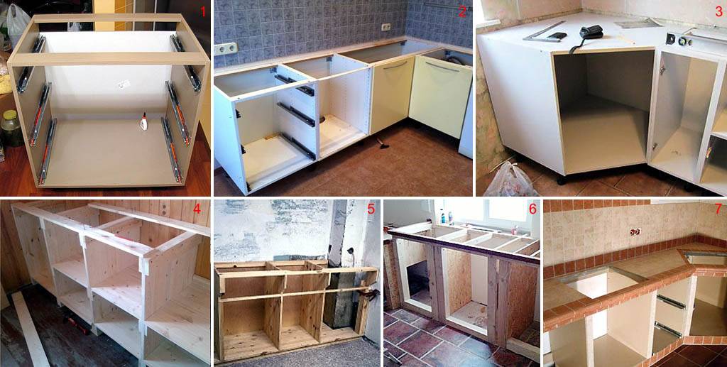 Любой кухонный гарнитур обязательно имеет шкафы, тумбы, ящики и секции, основой которых является короб из четырех досок. Такие коробки могут быть напольными, настенными или имеющие в качестве опоры только поверхности других мебельных элементов. При сборке коробов рекомендуется придерживаться следующих инструкций: