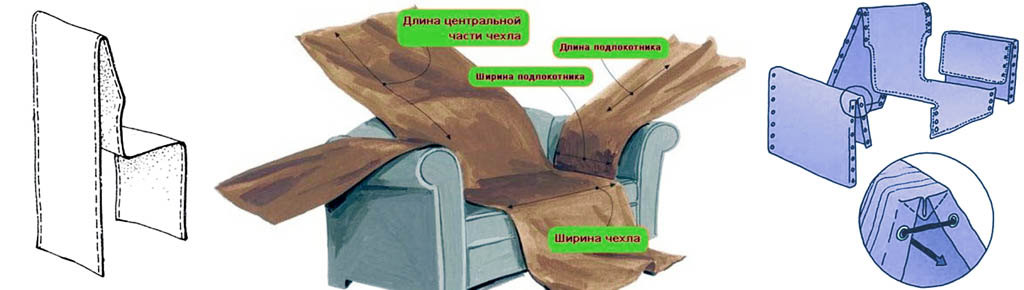 Чехлы на кресло разных видов раскроя