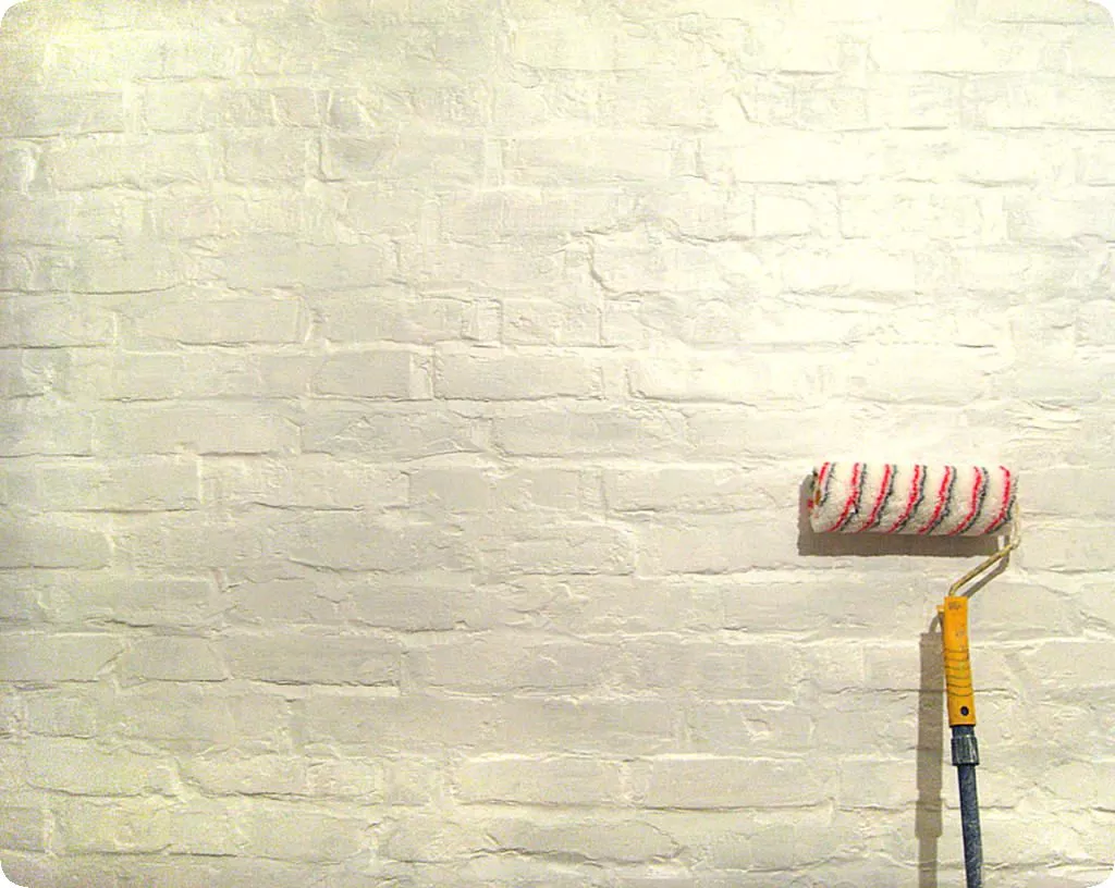 На относительно ровных или предварительно оштукатуренных поверхностях можно использовать и неширокий валик. Для этого можно предварительно прокрасить кисточкой места швов, после чего пройтись в несколько слоев валиком с краской. Подобная техника — самая быстрая, но вот декоративного эффекта с комбинацией цветов при этом не получиться.