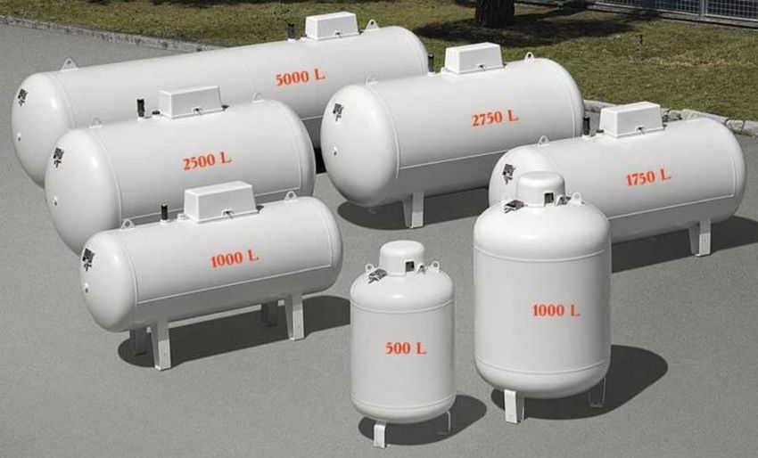 Сами по себе резервуары (газгольдеры) применяются для различных видов сжиженного газа, но именно для частного домовладельческого сектора используют СУГ — пропано-бутановую смесь. Метан относится к простейшим углеводородам, а бутан и пропан к алканам, то есть тяжёлым (или насыщенным) углеводородам. Несмотря на более высокую стоимость, именно эти виды газа легко сжижаются при обычных температурах и небольшом давлении. Поэтому более лёгкий метан закачивать в баллоны просто невыгодно с экономической точки зрения, поскольку для его сжижения нужно более высокое давление и критические температуры.