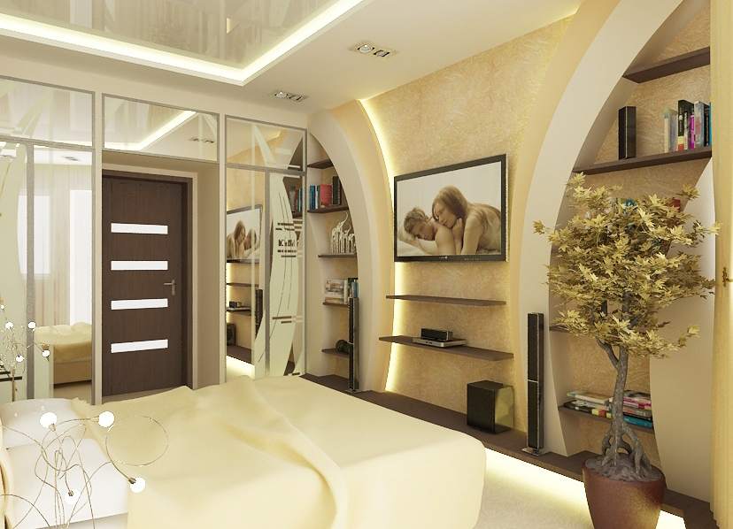 Если планируете устройство перегородок из ГКЛ, стоит сразу продумать их размеры, формы и наличие ниш. В последнем случае, разделяя пространство на отдельные зоны, перегородка может выступать в роли полки для хранения красивых изделий.
