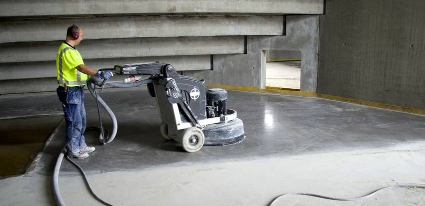 Обеспылить бетонный пол при помощи шлифмашинки можно и по старому, и по свежеуложенному основанию