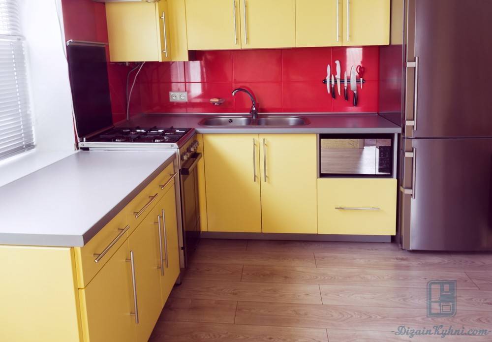 Выглядит ярко и солнечно. Отлично подходит для помещений, выходящих на теневую сторону, маленьких кухонь. Желтый цвет практичен, подходит для оформления кухонных фартуков и столешниц. Яркие оттенки подойдут для кухни в одном из современных стилей.