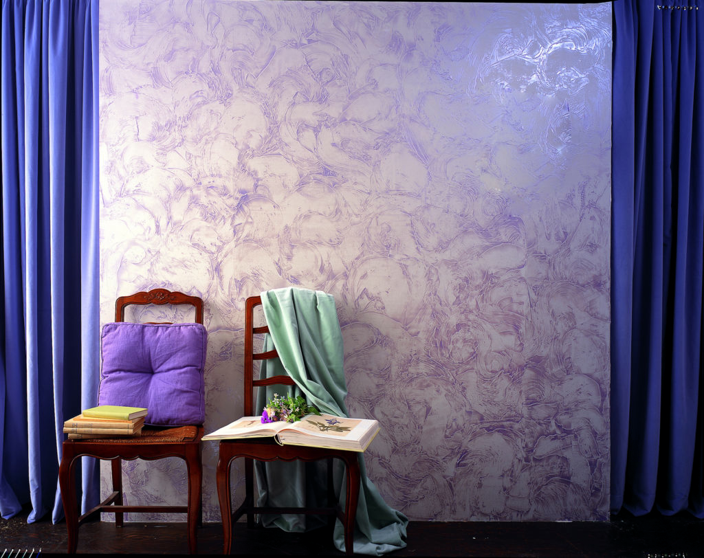Особый эффект достигается за счет химического состава краски. Кроме того, имеют значение технология нанесения и используемый инструмент. При создании требуемого внешнего вида для нанесения краски необходимы некоторые приспособления (фигурные шпатели, текстурные валики).