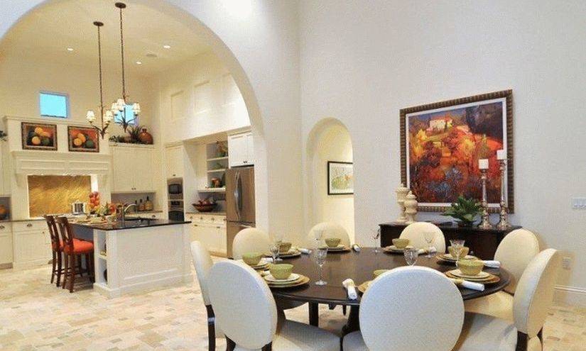 Если грамотно использовать арки, можно произвести объединение зон, сохранив простор и уют. Таким образом объединяют гостиную и прихожую или столовую с кухней.