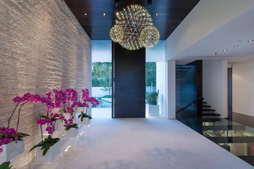 - чтобы уменьшить высоту стен, создайте высокие панели из декоративного камня в прихожей, фото с этим приемом есть в нашей галерее;