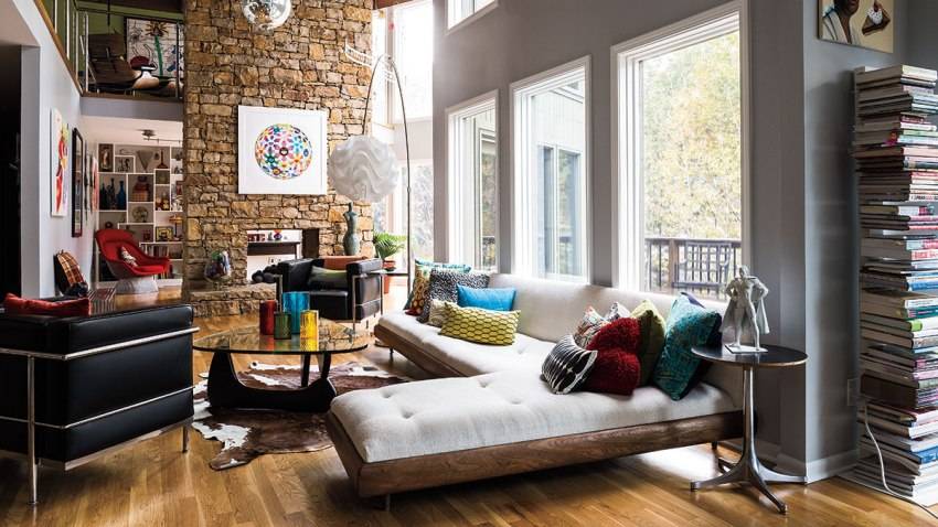 Лофт, минимализм, современная классика и другие стили дизайна интерьера не обходятся без участия декоративного и натурального камня. Материал гармонично вписывается в оформление каждой комнаты, включая санузел и балкон. Оригинально смотрятся дверные и оконные проемы. Главное не перестараться и гармонично дополнить камень другими материалами.