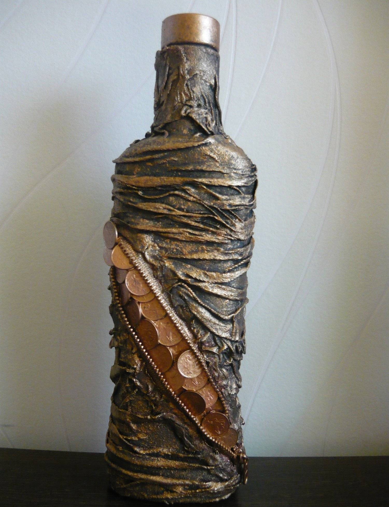 После праздников, застолий часто остается большое количество различных упаковок, в числе которых пластиковые, стеклянные бутылки. Их выкидывают, сдают в пункты приема вторсырья, а творческие люди, путем некоторых манипуляций, превращают в оригинальный подарок, предмет оформления интерьера.