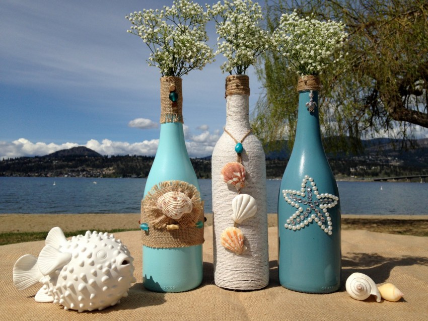 Вариаций украшения бутылок существует немало, но все же можно их структурировать по группам по целям декорирования: дополнение интерьера новыми аксессуарами, подготовка к свадебной церемонии, тяга к творчеству, отделка старых или неприметных предметов.