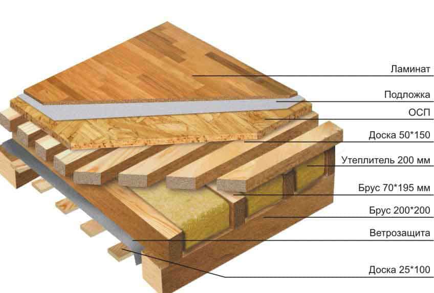 - Сверху утеплителя нашивают лаги, к которым затем крепят струганные доски чистового пола. Вместо досок можно использовать плиту ОСП.