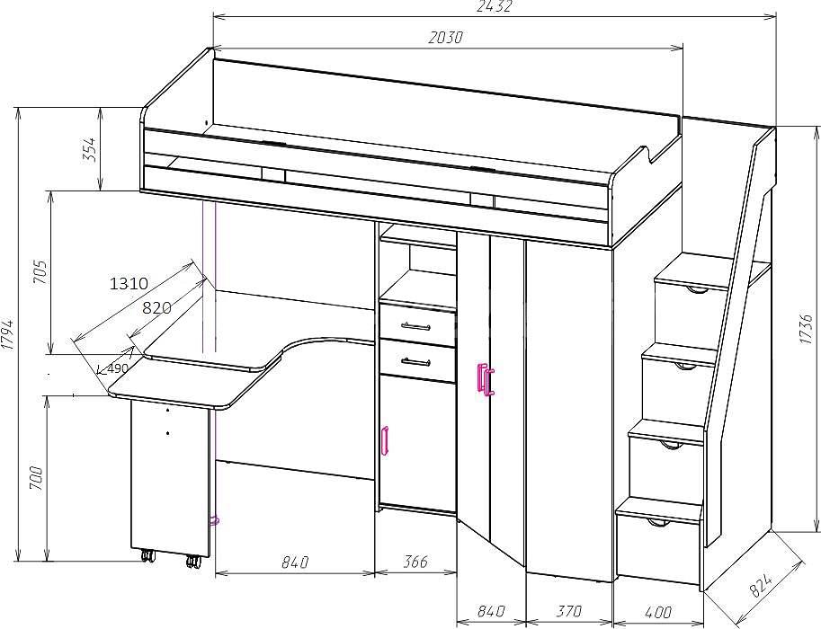 В зависимости от конструкции кровать-чердак со столом может быть двух основных видов: