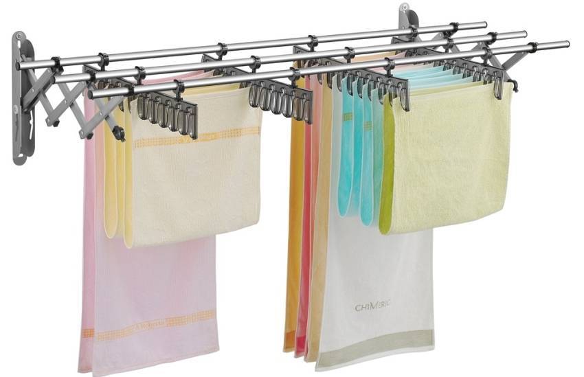 Раздвижная сушилка для белья на стену – это довольно оригинальная модель, которая представляет собой металлическую конструкцию с несколькими трубками, предназначенную для развешивания влажного белья. Есть варианты, которые раскладываются по принципу гармошки. Элементы сушилки соединены между собой надежными заклепками.