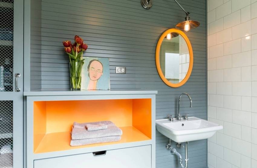 Облицовка в светлой гамме с яркими акцентами