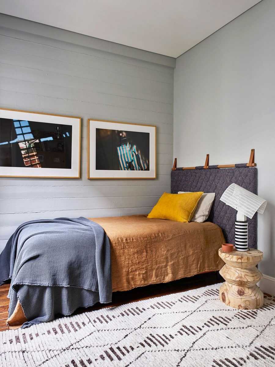 Обратите внимание, как много разных цветов задействовано в этой спальне, но при этом она смотрится стильно и современно. В чем же соль? Они не нарушили ни одного правила из этой статьи: фоновый цвет белый, акцентные цвета с одинаковой и очень низкой насыщенностью, в одинаковой пропорции