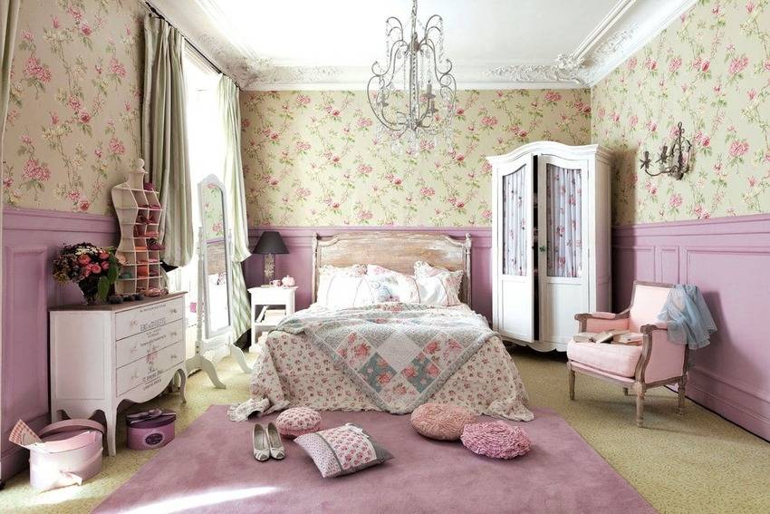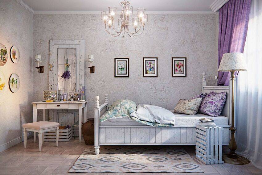 Что выбрать для отделки стен: штукатурку, покраску или обои для спальни в стиле прованс с фото
