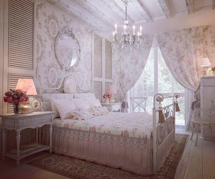 Такую спальню можно оформить в деревенском или французском стиле. Главное, чтобы ее интерьер был нежным, наполненным природной свежестью.