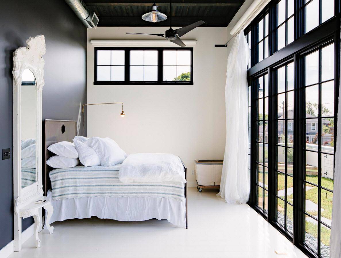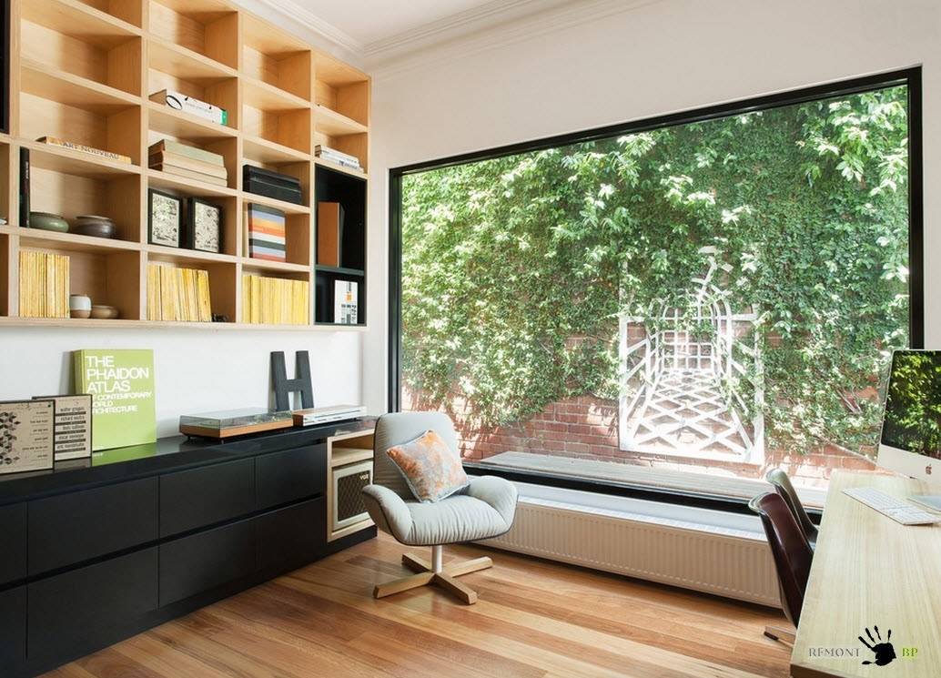 - В помещениях с высокими потолками хорошо будут смотреться вытянутые и узкие проемы, а в комнатах, имеющих стандартную высоту – большие окна, занимающие всю ширину стены.