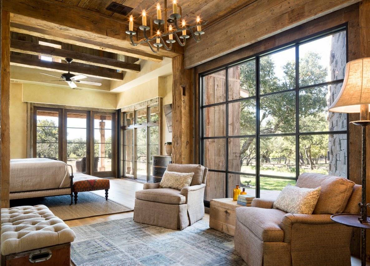 Панорамные окна предполагают интересный дизайн жилища. Прекрасным решением станет использование деревенского, классического или современного стиля в интерьере. Великолепные обзоры из окна дополнят природные материалы, такие как кирпич, древесина и дикий камень. Декорировать конструкции можно занавесками из полупрозрачных тканей.