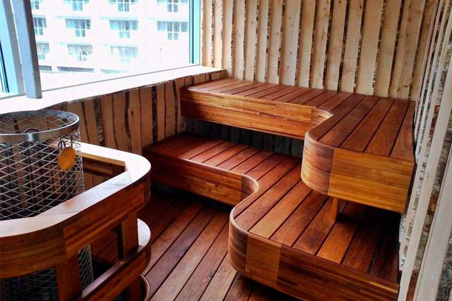 - Балкон или кладовая в том случае, когда сауна будет иметь инфракрасный обогрев. Кстати, сауна на балконе красива тем, что она не будет сокращать жилую площадь квартиры.