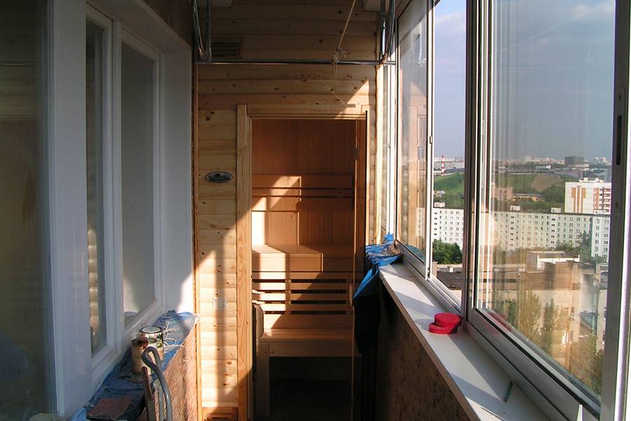 идея: обладателям больших лоджий рекомендуем задуматься о переоборудовании её части под компактную «парилку»