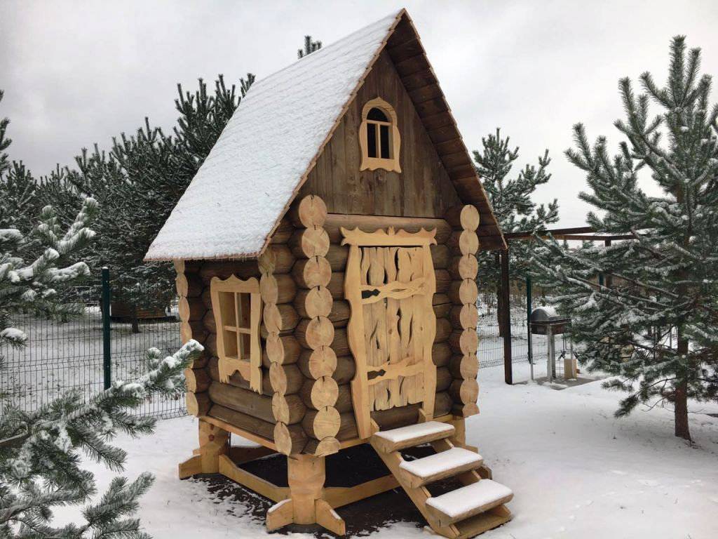 Более скромные конструкции всегда стоят несколько дешевле. Впрочем, бывают исключения, когда для их изготовления используется дорогой материал. Он устойчив к влаге и гниению, поэтому такие домики могут быть на улице в течении длительного времени. Но все же лучше дополнительно покрывать их слоем защитного лака.