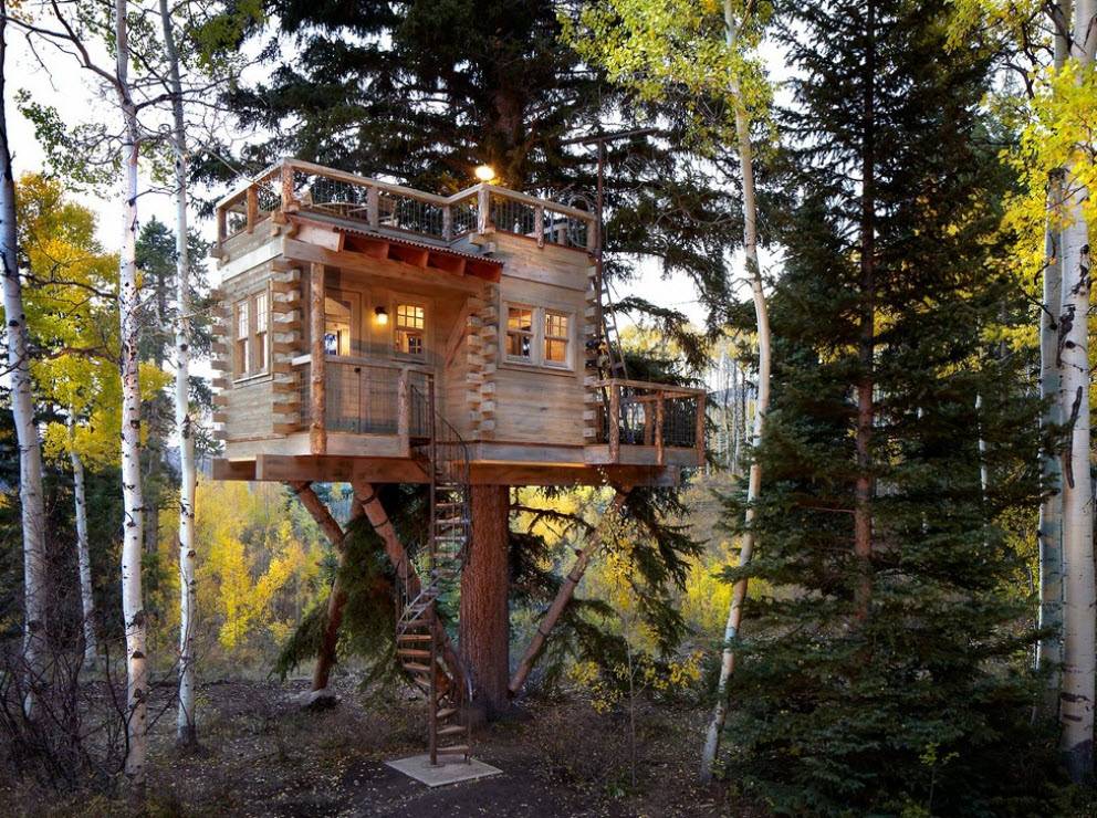 Решая, каким будет домик, опирайтесь на отводимую ему роль. Если это будет исключительно место детских игр, то можете трактовать его в любой форме. При желании сделать универсальный домик на дереве как для детей, так и для вечерних посиделок взрослых, позаботьтесь о специфике отделки интерьера.