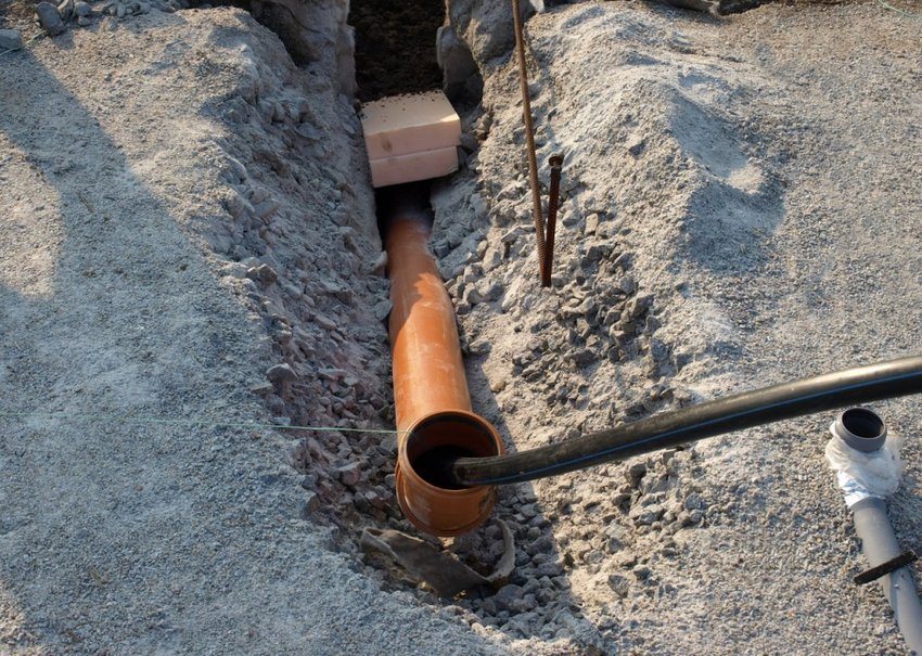 - Выкапываются канавы под трубы и тщательно утрамбовываются.