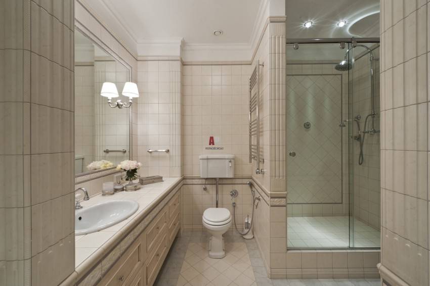 - Кабина из плитки проста в уходе. Она не требовательна к моющим средствам и сохраняет первоначальный вид в течение длительного времени.
