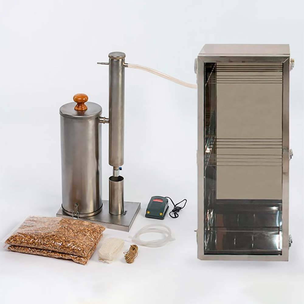 Любой дымогенератор для коптильни холодного копчения состоит из контейнера, насоса (компрессора) и эжектора
