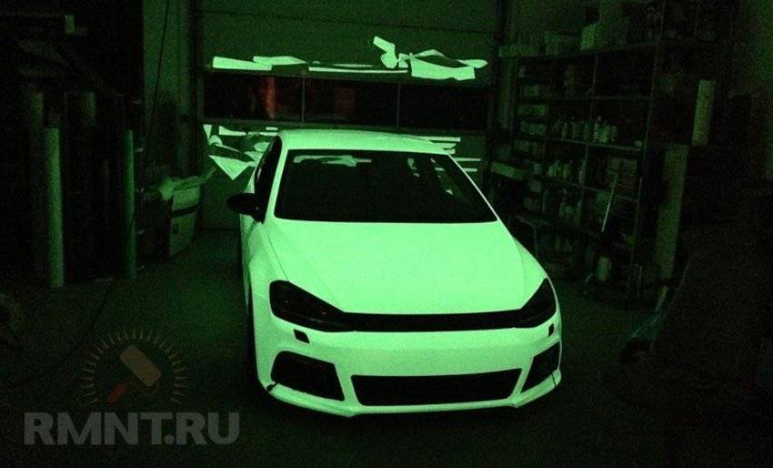- Фосфоресцентная. Такой краситель применяется редко, так как в основе материала лежит фосфор, опасное для человека вещество. Чаще фосфоресцентные составы применяются при отделке кузовных деталей автомобиля.