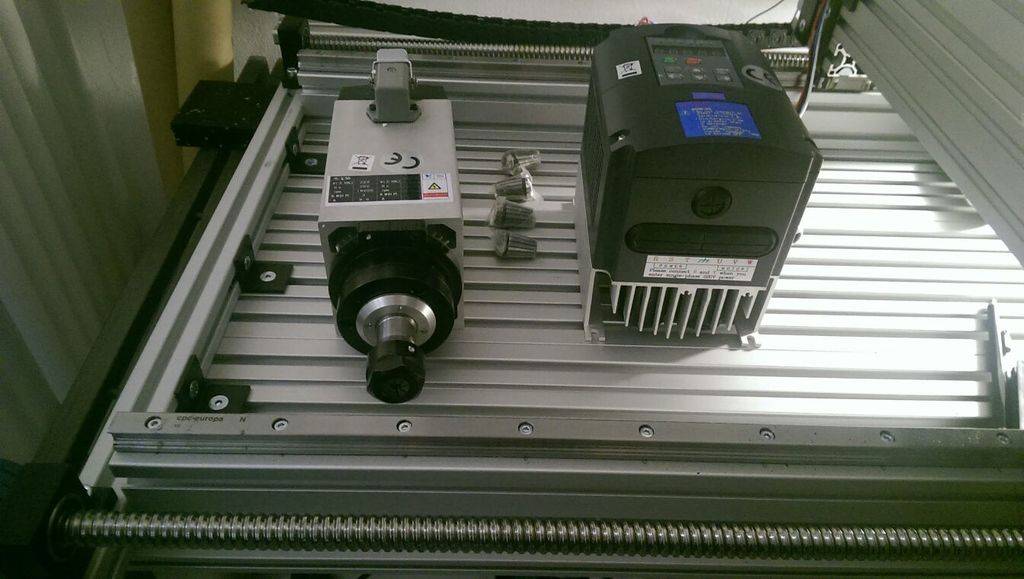 Качество шпинделя очень хорошее. Он довольно мощный и простой в настройке. Я недооценил вес в 9 кг, но, к счастью, моя рама достаточно крепкая и с тяжелым шпинделем проблем нет. (Высокий вес является причиной для привода оси Z на 2,7 А)