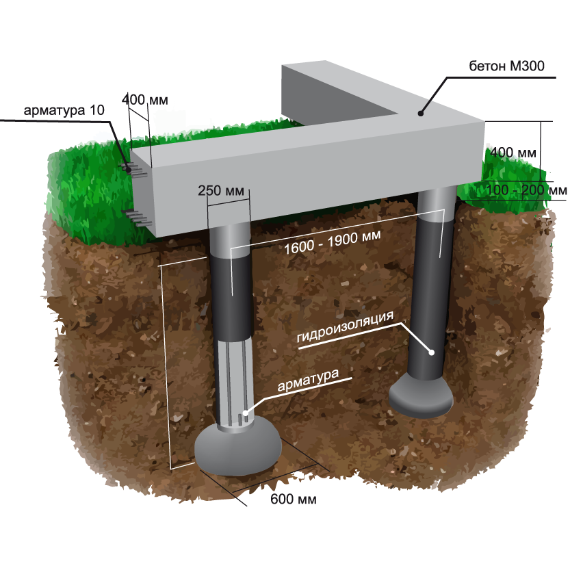 Основной особенностью данного фундамента является применение специального бура. Он дает возможность сверлить в грунте отверстие с последующей заливкой бетоном. В нижней части образуется расширение в виде полусферы.