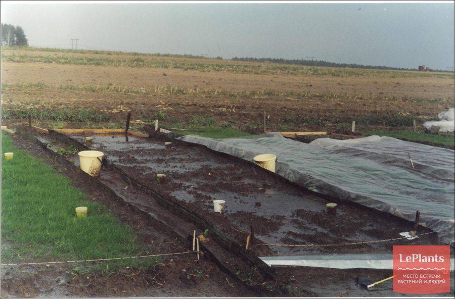 - Глубоко перекапываем почву или снимаем дерн, удаляя корни. Землю потом не рыхлим.