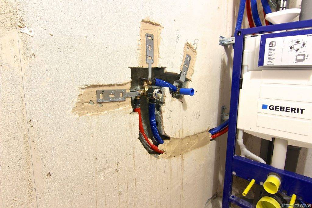 Штатный же монтаж предусматривает штробление стен, укладку в штробы подводящих труб горячей и холодной воды и на завершающем этапе — установку самого смесителя.