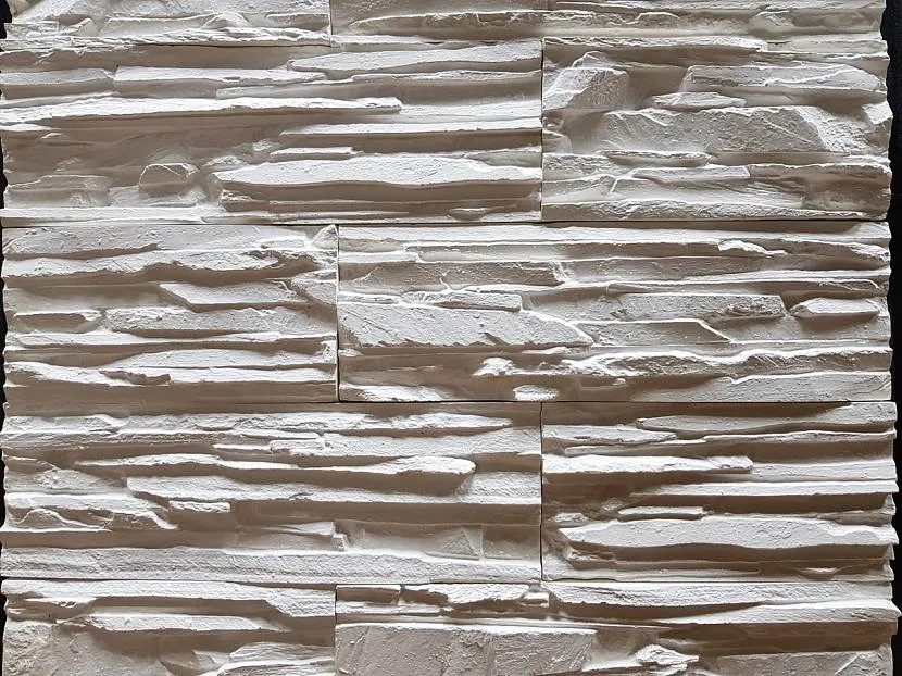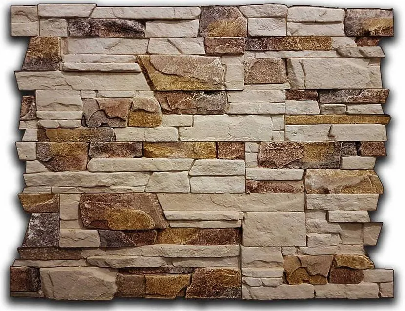 Её внешняя поверхность может выглядеть в виде среза разных видов камня, а также имитировать спилы ценных пород дерева. Кроме этого, гипс окрашивают таким образом, что кладка из плитки образует эффектные узоры и орнаменты.